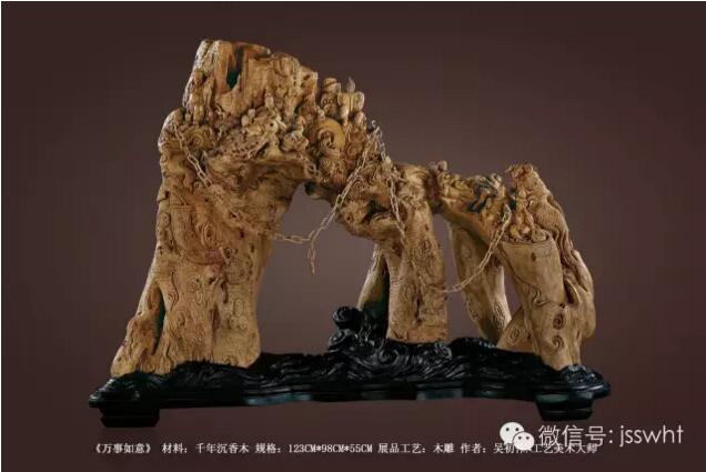 沉香木是瑞香科树种干燥木质部分,是一种木材,也是沉香的宿主。沉香木虽不等同我们传统意义所指的沉香,但也具有较高的价值,其中树龄较长的沉香木,含油脂丰富,利用价值很高。特别是这些沉香木经过艺术大师的再创作,赋予了它艺术价值,成为木雕艺术品,则更显珍贵。
