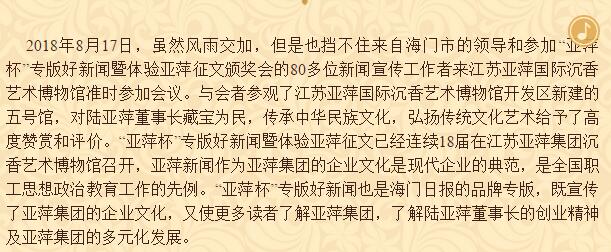 “亚萍杯专版好新闻暨体验亚萍征文颁奖会”在江苏亚萍国际沉香艺术博物馆成功召开