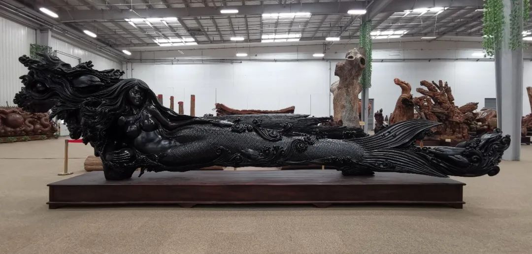还有一尊足有数吨重的乌木美人鱼据说也值三个亿,但令众多参观者傻眼的是,怎么就这样在室外露天放着?